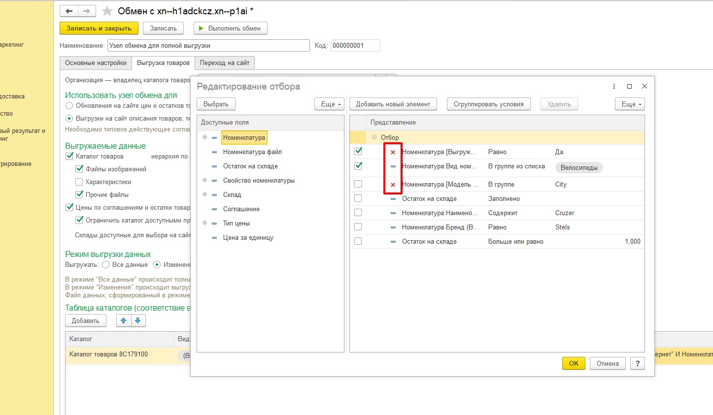 Также в обмене с сайтом, доп реквизиты общие по которым обмен настраивался помечены красными крестами