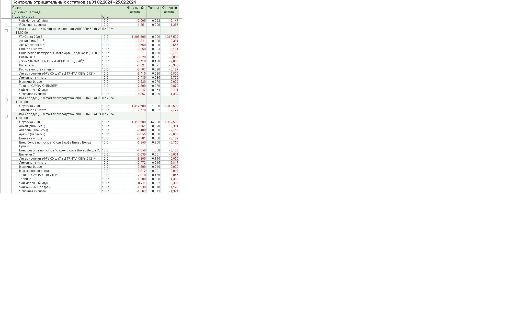 Необходима обработка для БП 3.0 - уменьшить расход материалов в выпуске ГП по контролю отрицательных остатков.