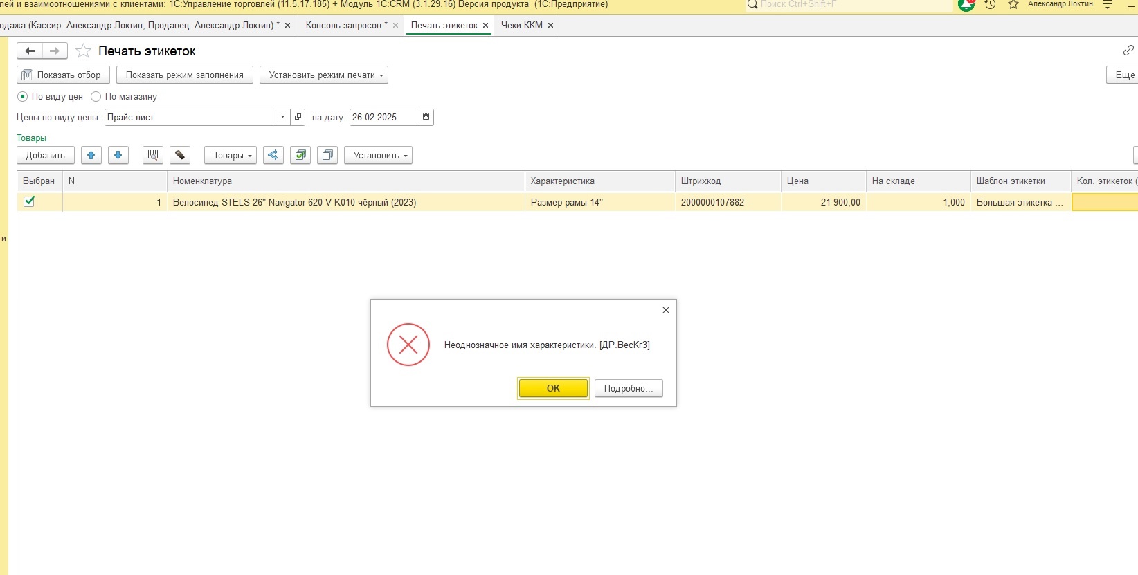 Ошибка при печати этикеток ут 11.5