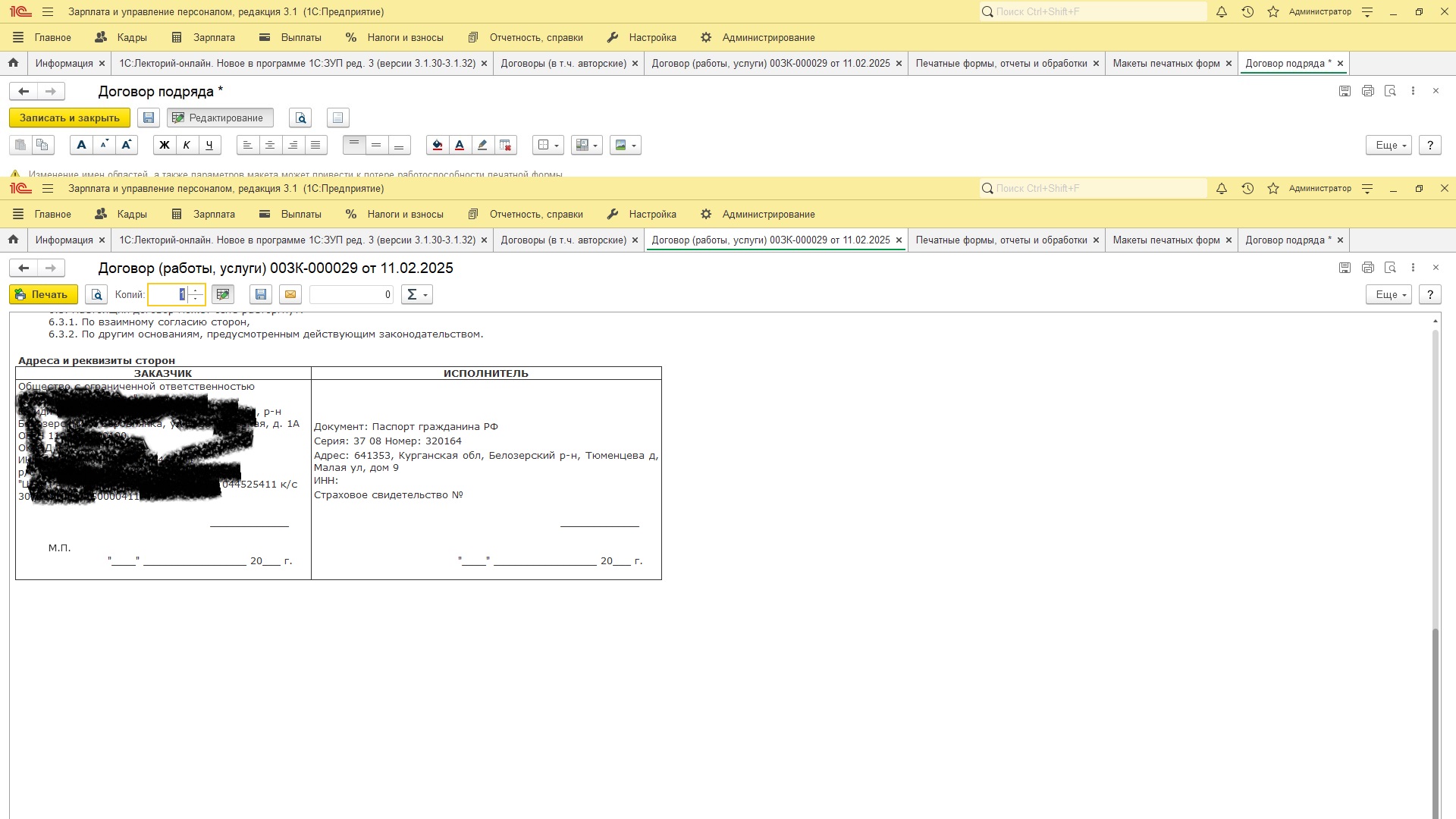 По исполнителю ФИО исполнителя, СНИЛС , ИНН и и внизу имя и фамилию