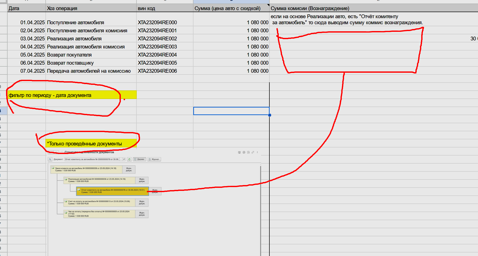 Сделать отчет по движения автомобилей в Альфа-авто 6