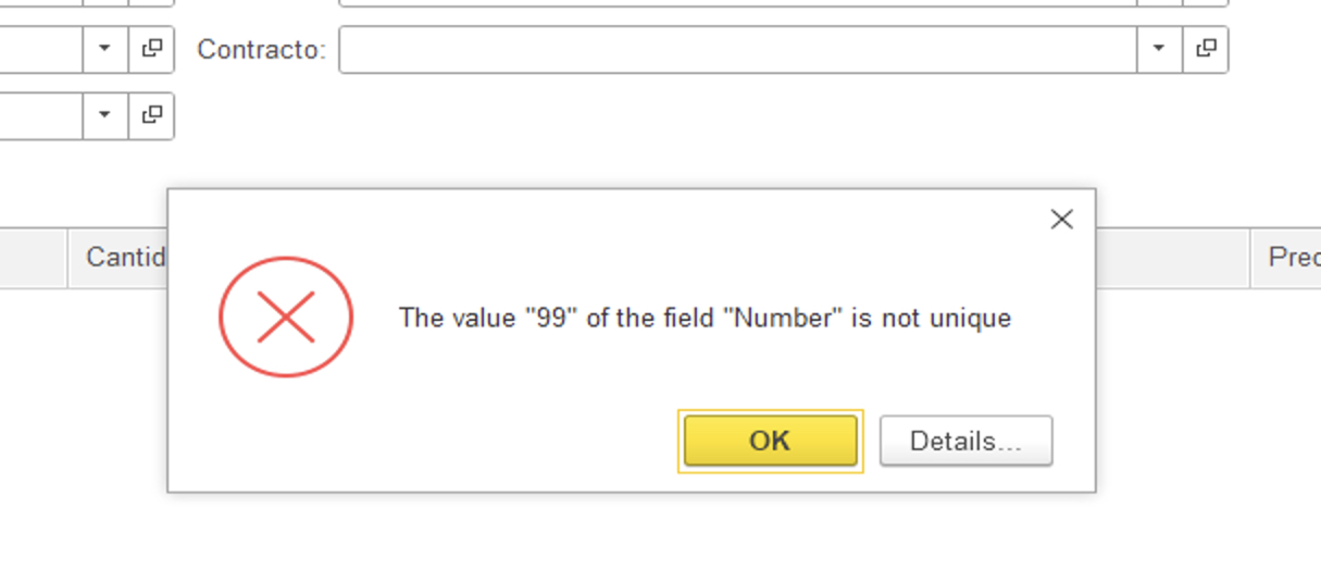 Ругается, что номер 99 не уникальный при сохранении нового документа Pedidos.