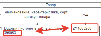 Необходимо поправить внешнюю печатную форму. Поменять местами артикул и код товара.