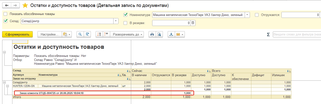 Из установленного расширения открывается отчет Остатки и доступность товаров которые находятся в "резерве" и в статусе "отгружается" (см скрин 1). Нужно, чтобы при открытии открывался отчет с расшифровкой (см скрин 2)