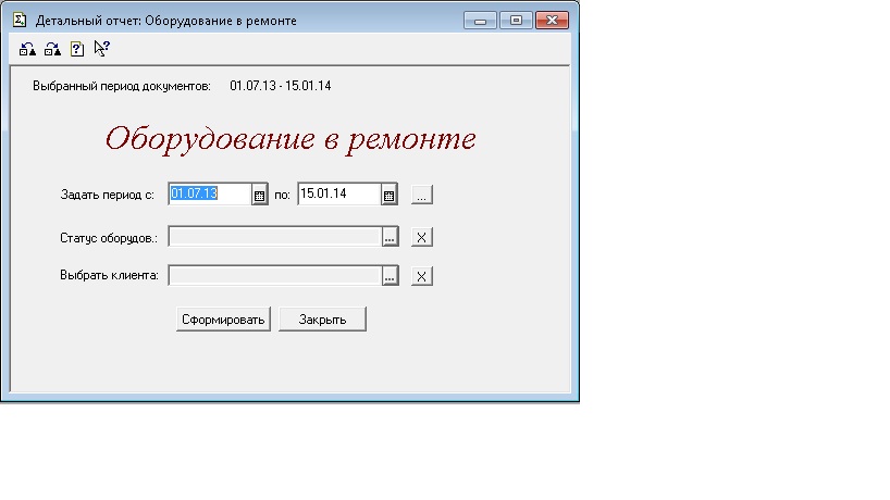 Отчет нужен чтобы оперативно смотреть какое оборудование находится или находилось в ремонте.