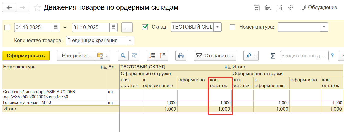 Необходимо сгенерировать недостающие складские ордера по данным отчета Движения товаров на ордерных складах (см.скрин)