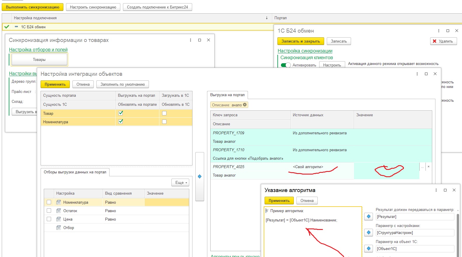 Написать "Свой алгоритм" в "Коннектор к Битрикс24" для выгрузки ID...