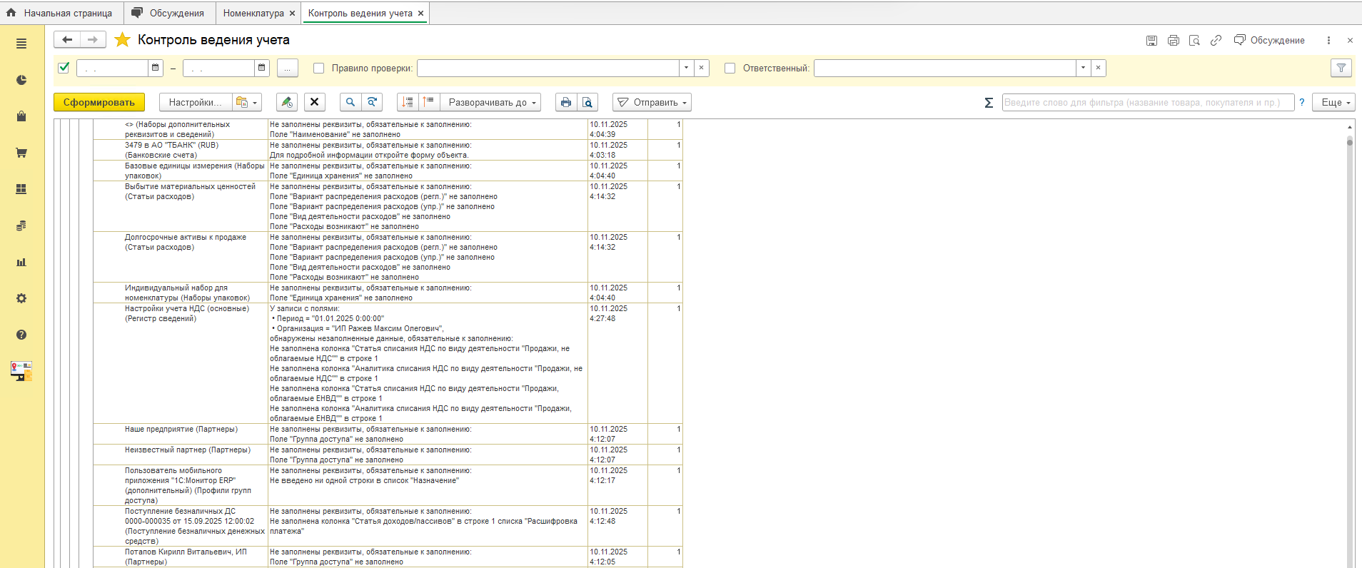 Провести настройку 1С:УТ 11.5 и исправление ошибок в "Контроль ведения учета"