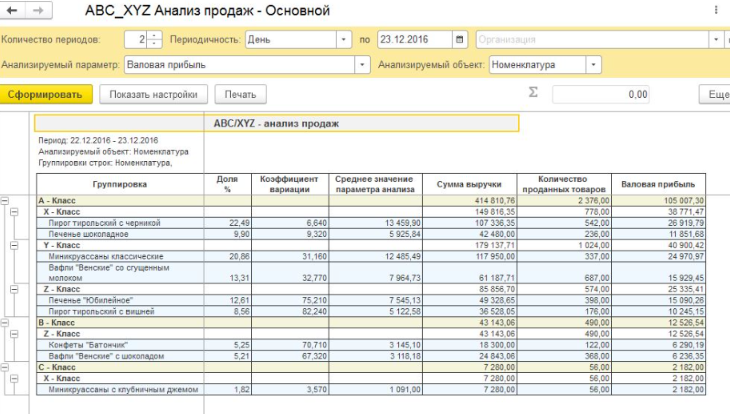Требуется сделать отчет АБС XYZ для 1с БП 3 по документам реализация товаров услуг и отчет о розничных продажах в разрезе номенклатуры и складов (пример отчета во вложении)