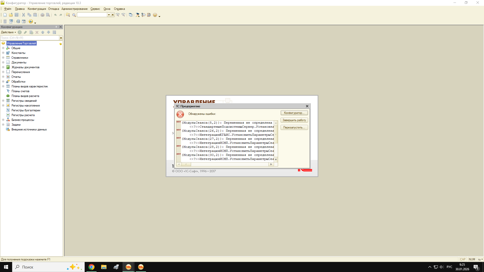 При настройке НДС 22% сбили какие то настройки в 1С, теперь программа не открывается.