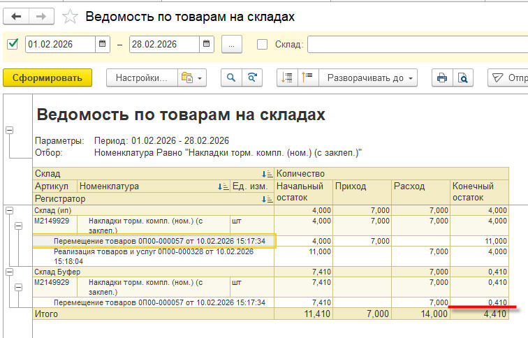 Остаток на конец периода меньше, чем доступный. Скрины отчетов прилагаю. В них суть.
