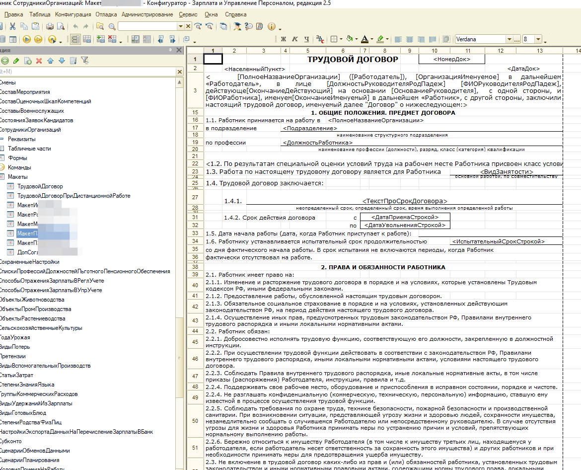 В ЗУП 2.5 есть шесть добавленных печатных форм (5 - трудовые договора и 1 - доп. соглашение) для справочника Сотрудники для разных организаций в одной конфигурации.
