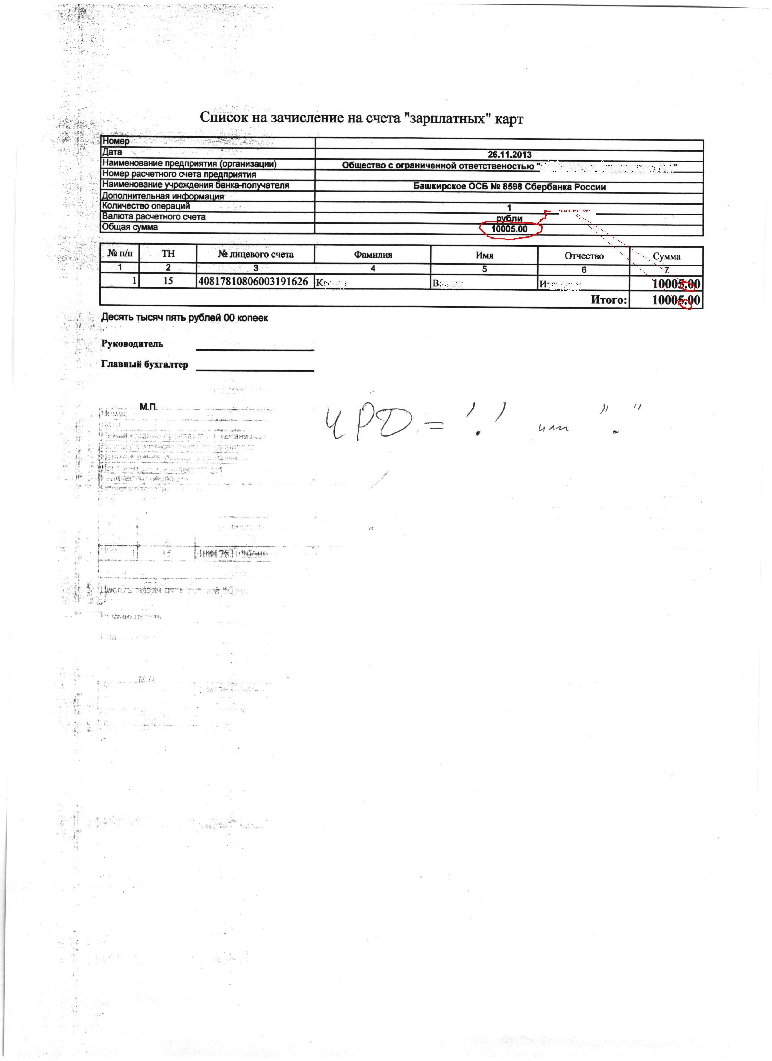 Изменить печатную форму "Список зачисления на счета зарплатных карт" и сделать ее внешней. Форма в составе конфигурации. Необходимо привести ее к форме во вложении и подключить к документу "Выплата". А именно: заменить разделитель в суммах, Разбить ФИО "по колонкам" и изменить порядок столбцов.