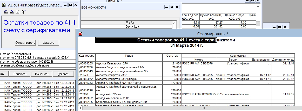 5. Остатки товаров с сертификатами