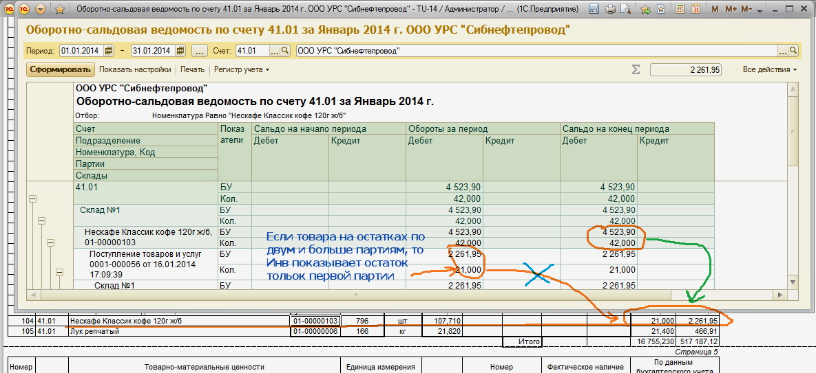1. при выводе остатков по 41му счету, если остаток товара более чем от одной партии, то в отчет выходит только остаток первой партии
