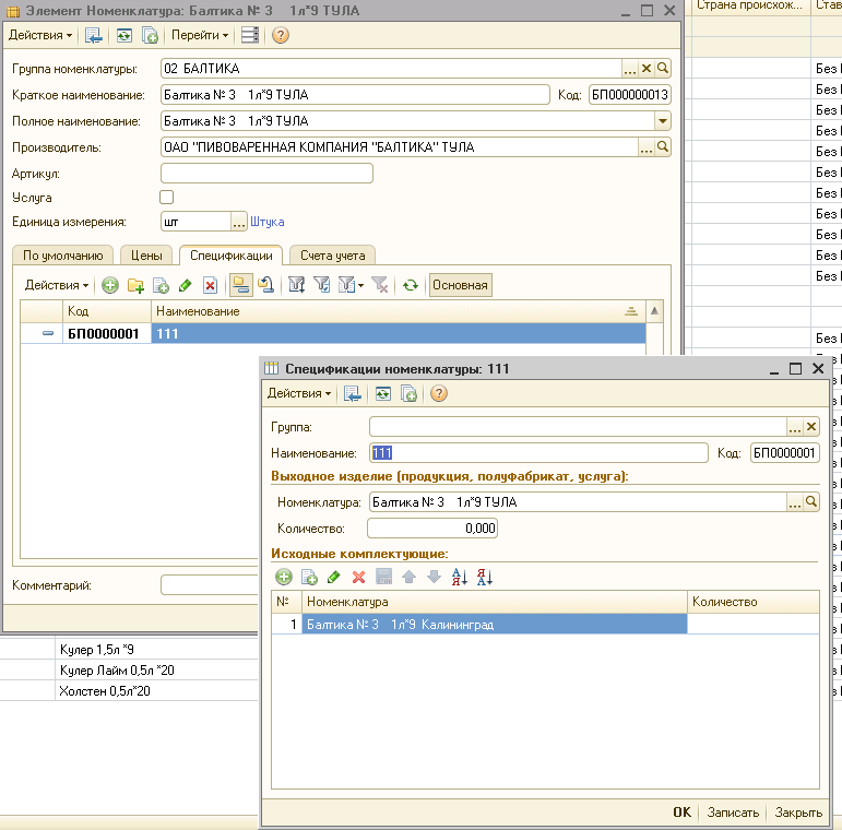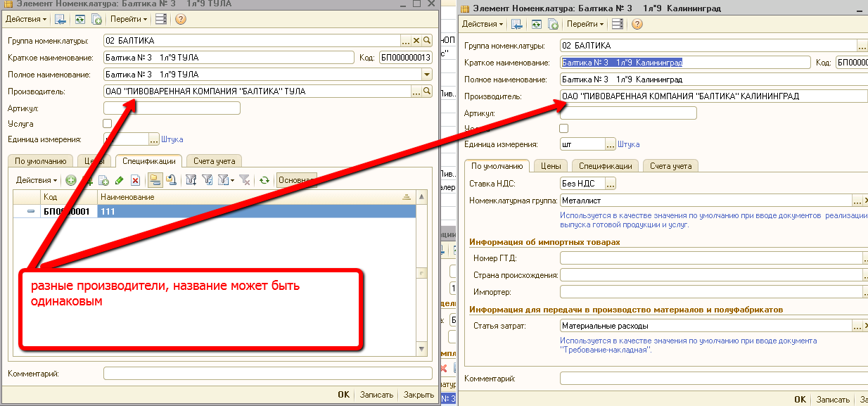 Это нужно для алкогольной декларации, т.к по сути все 3 позиции – это одно и то же, но и у них разные заводы изготовители. Например, пиво «Балтика» могут делать в Туле, Ростове, Калининграде. А в карточке номенклатуры указывается только один завод-изготовитель.