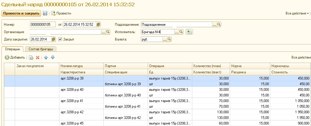 Нужно сделать таблицу с тарифами, чтобы при выборе различных спецификаций, проставлялись соответствующие суммы в наряд.