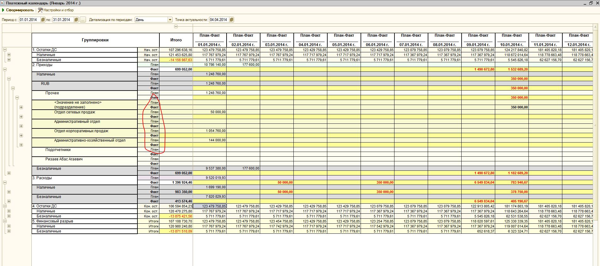 Задача: в новом отчете сделать группировки "ПЛАН" и "ФАКТ" по аналогии с старой версией отчета. В старой версии на каждую группировку своя разбивка на "ПЛАН" и "ФАКТ", а в новом только лишь в верхней группировке (скриншот во вложении).