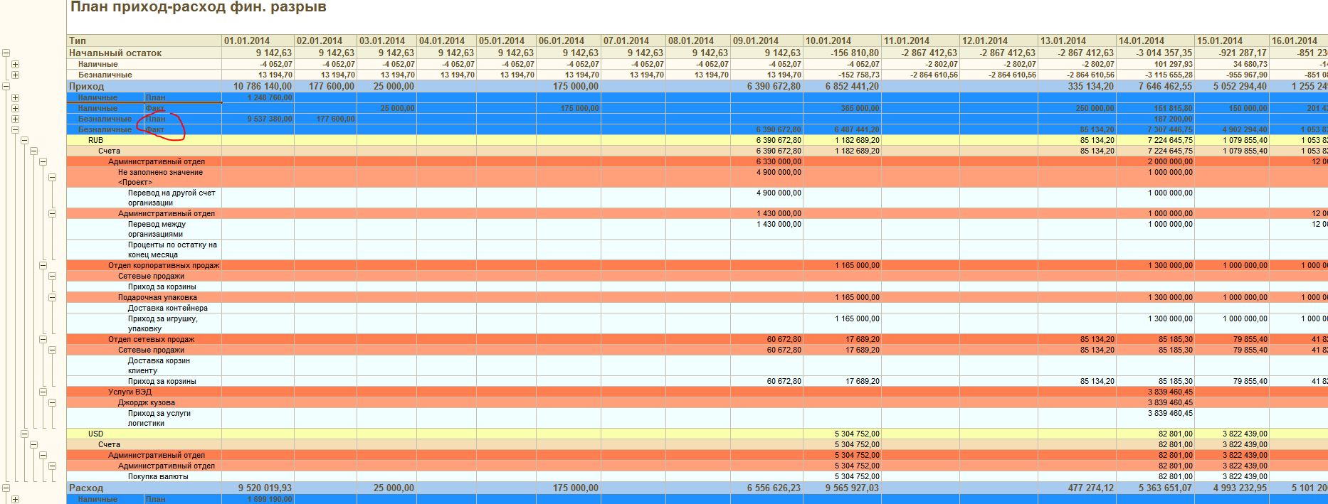 Добавить группировки ПЛАН и ФАКТ в отчет на СКД "Платежный календарь" для КА.