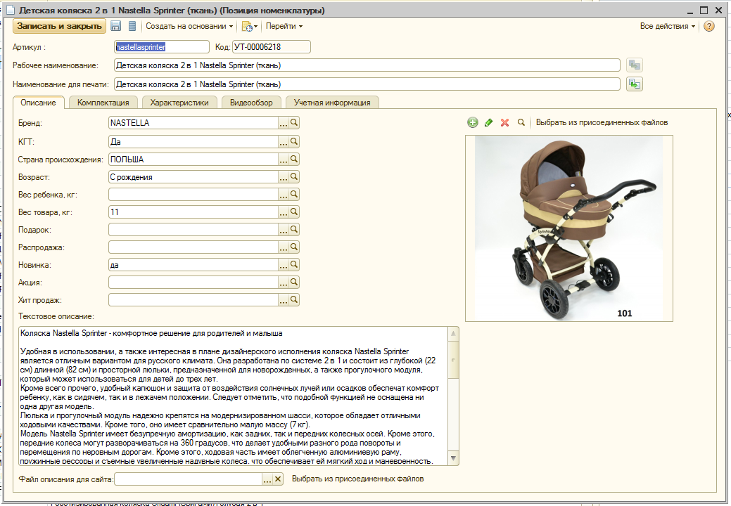 Настройка карточки элемента номенклатуры (товара) в 1С УТ 11
