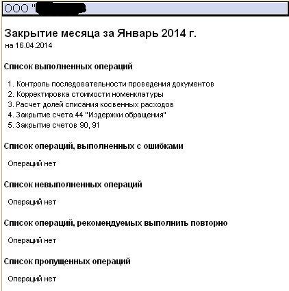 В Бухгалтерии предприятия 2.0.57 при попытке выполнения операции «Закрытие месяца» январь 2014 не закрывается счет 26.