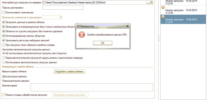 Имеем полностью чистый на сегодня релиз Бухгалтерии Строительной Организации релиз 3.0 (3_0_29_1) под 8.3. Сформировали с помощью обработок из БСО остатки из программы Бухгалтерия (ОСН) 4.5 (какой-то их последних релизов). Данных в 7.7 немного и они не важные и кривые, так что в случае чего мы всё просто разнесём тогда ручками бухов и всё, но хотелось бы конечно лучше загрузить данные автоматом в БСО 3.0. С выгрузкой данных из 7.7 с этим всё ОК, а загрузить полученные остатки на 01.01.2014 года + все доки текущего года в БСО не можем вообще никак не идут они в БСО, грузили по крайней мере тремя разными способами (и синхронизацией и тупой загрузкой и двумя встроенными разными в БСО типовыми загрузками), результата 0-ль, загрузка даже не начинается и ничего не переносится. Ошибки при загрузке в БСО смотрите во вложениях в этом задании.