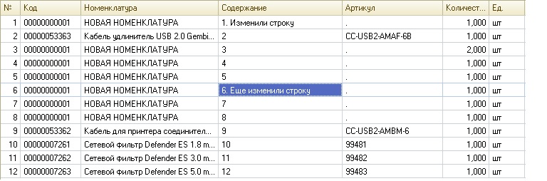 После этого редактируем какую-то строку, к примеру, 1-ю.